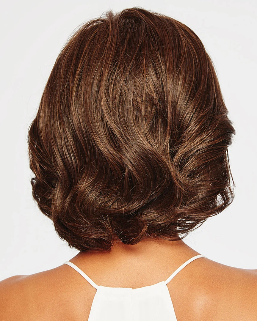 Including dramatic side swept bangs and long, subtle layering throughout, this stunning mid-length cut combines the natural locking hairline of a Sheer Indulgence lace front, monofilament part for off-the -face styling and parting flexibility, with the added styling versatility of our heat friendly Tru2Life synthetic hair.