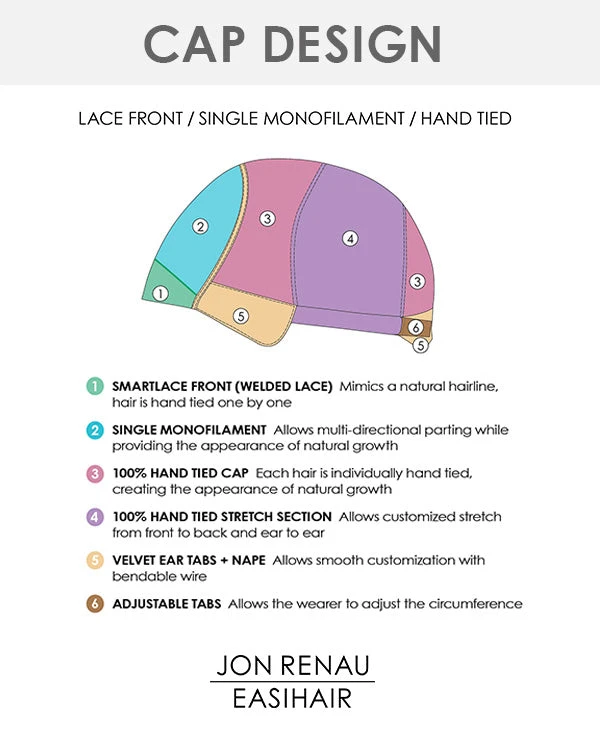 This gorgeous long bob shines with the natural finesse of human hair, enhanced by a nearly invisible SmartLace front and a hand-tied, light-density cap for airy movement.