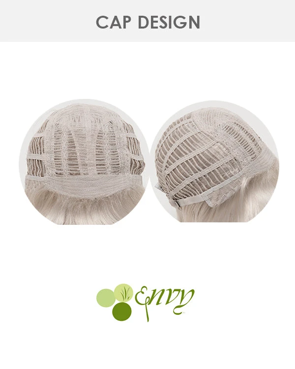 Mila by Envy is a lovely, shoulder-length shag with face-framing pieces that compliment any age and face shape. Dramatic layering gives this look lots of movement and volume, while the Open Top construction keeps things lightweight and comfortable.