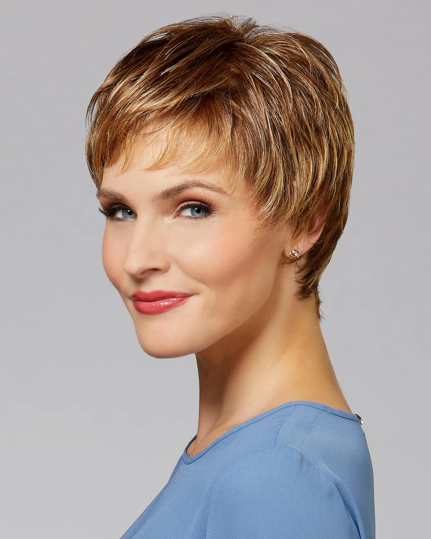 Short layers pixie in an effortless good look with easy styling. Designed for lightweight wear.