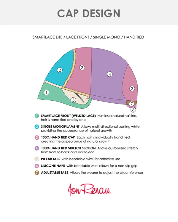 Miranda by Jon Renau is a sophisticated long layered style now available in a SmartLace™ Lite cap. The SmartLace™ front looks like a natural hairline and the monofilament part allow for a very natural part. The non-slip silicone nape ensures a snug fit while polyurethane ear tabs allow for the most flexibility. Miranda pairs effortless natural grace with sophistication.